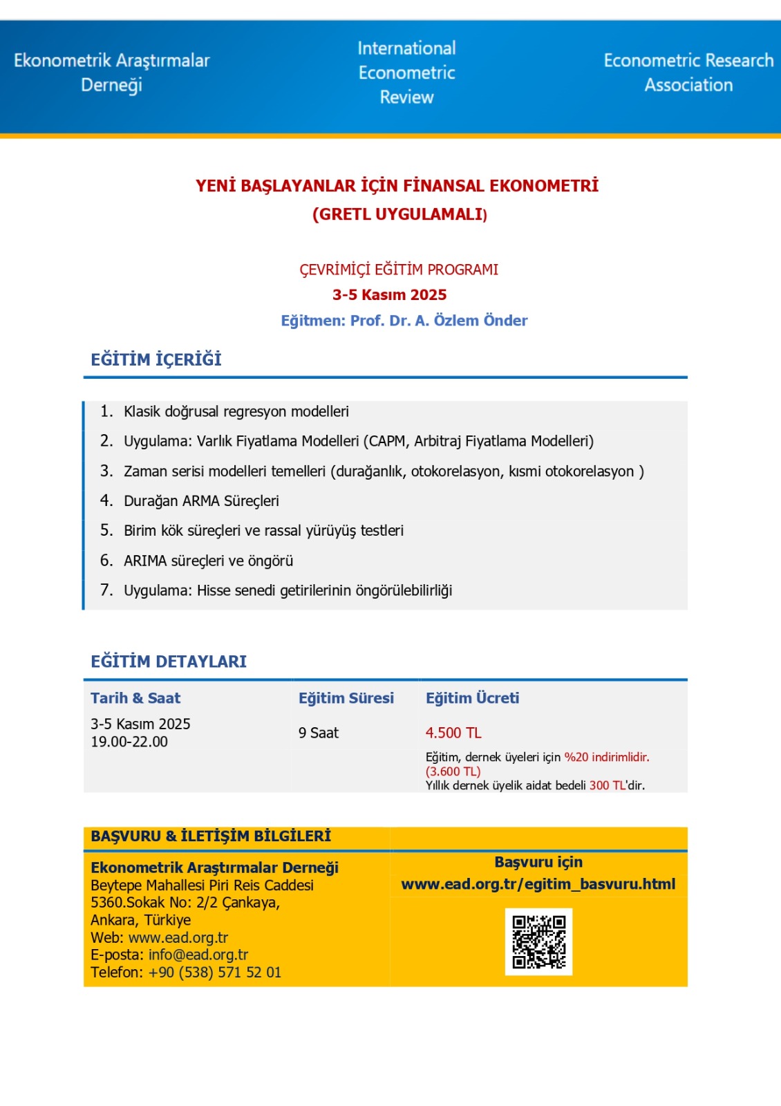 Yeni Başlayanlar için Finansal Ekonometri (GRETL Uygulamalı)
