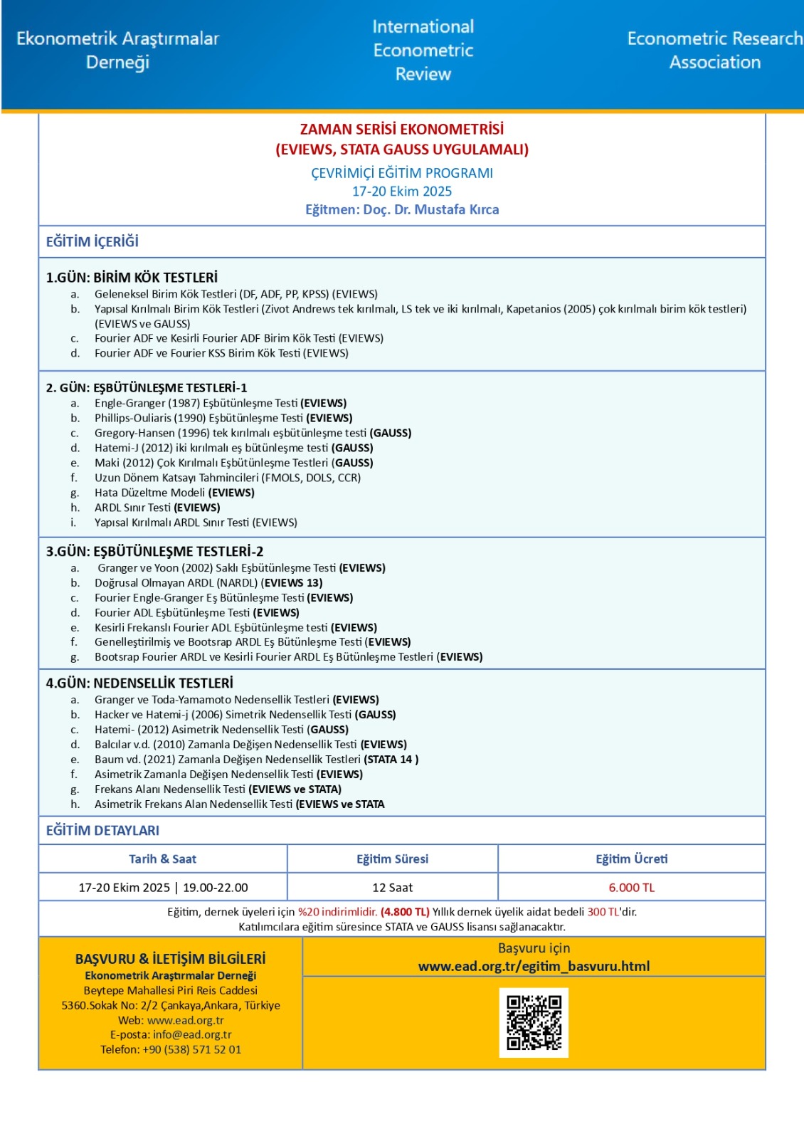 Zaman Serisi Ekonometrisi - EVIEWS, STATA GAUSS UYGULAMALI, Eğitmen: Doç. Dr. Mustafa Kırca